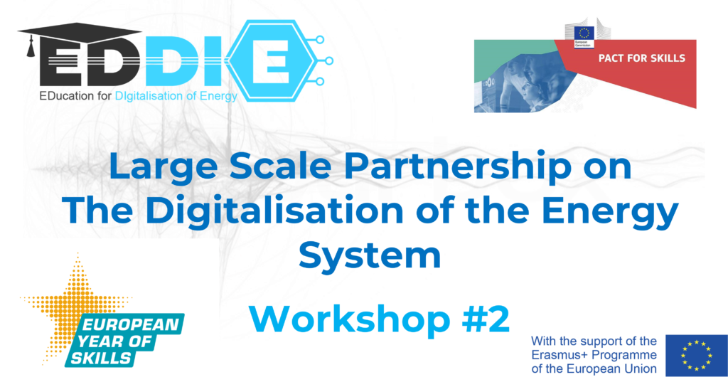 EDDIE representatives hosted the second online workshop for the development of a “Large Scale Partnership for Digitalisation of Energy” on the 27th of June 2023. The event has been organized in collaboration with Ecorys, European Commission’s (EC) Directorate-General for Internal Market, Industry, Entrepreneurship and SMEs (DG GROW) and Directorate-General for Energy (DG ENER) to address the need of having a skilled workforce to accelerate the digital transition.