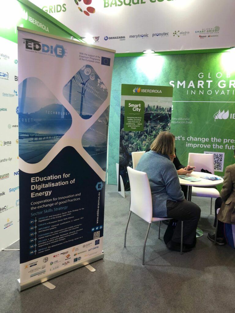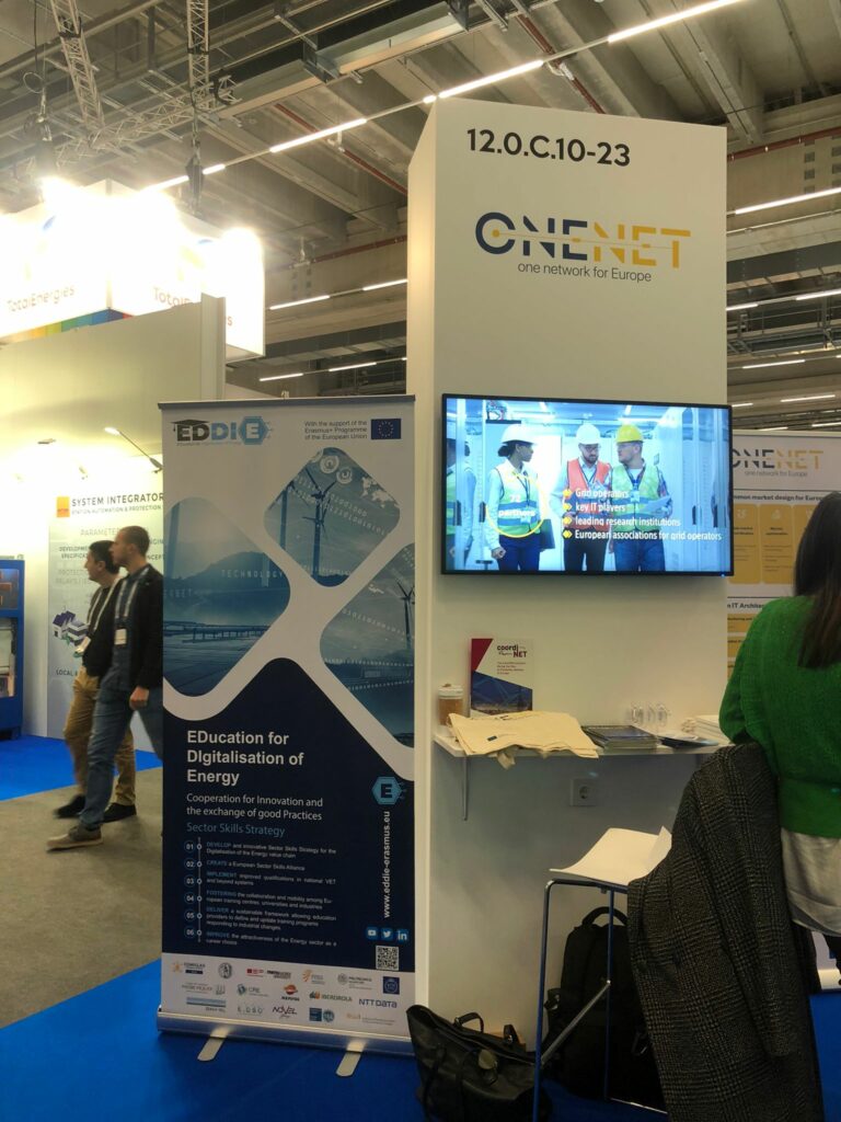 EDDIE Project participated in this year’s ENLIT Europe event held between the 29th of November and the 1st of December in Frankfurt, Germany. Enlit is a constantly growing, inclusive and end-to-end forum that addresses every aspect of the energy agenda. Throughout the year, Enlit Europe tries to ensure collaborations and innovative discussions to solve the most pressing issues in energy. Enlit Europe brings one face-to-face with the best thought-leaders, innovators and disruptors in the energy sector and beyond. The various exhibitors present, represent power generators, IPPs, utilities, grid operators, energy companies, retailers, energy markets, energy traders and exchanges, plus commercial and industrial energy users. Apart from the latter, the Exhibition Floor doesn’t only offer leading organisations showcasing their latest tech, solutions and strategic insights, but different Zones, Country Pavilions and Hub Sessions. EDDIE was present in two locations which were the ‘EU Project Zone’ and the ‘Global Smart Grids Innovation Hub’ powered by Iberdrola.