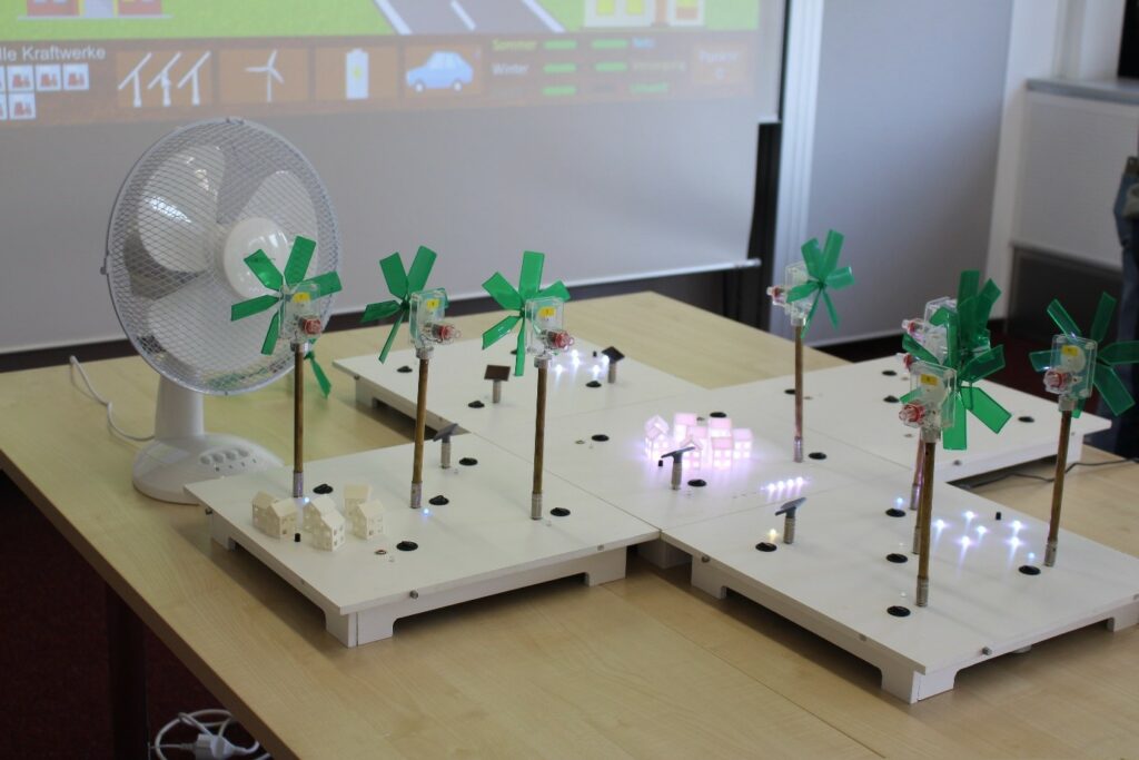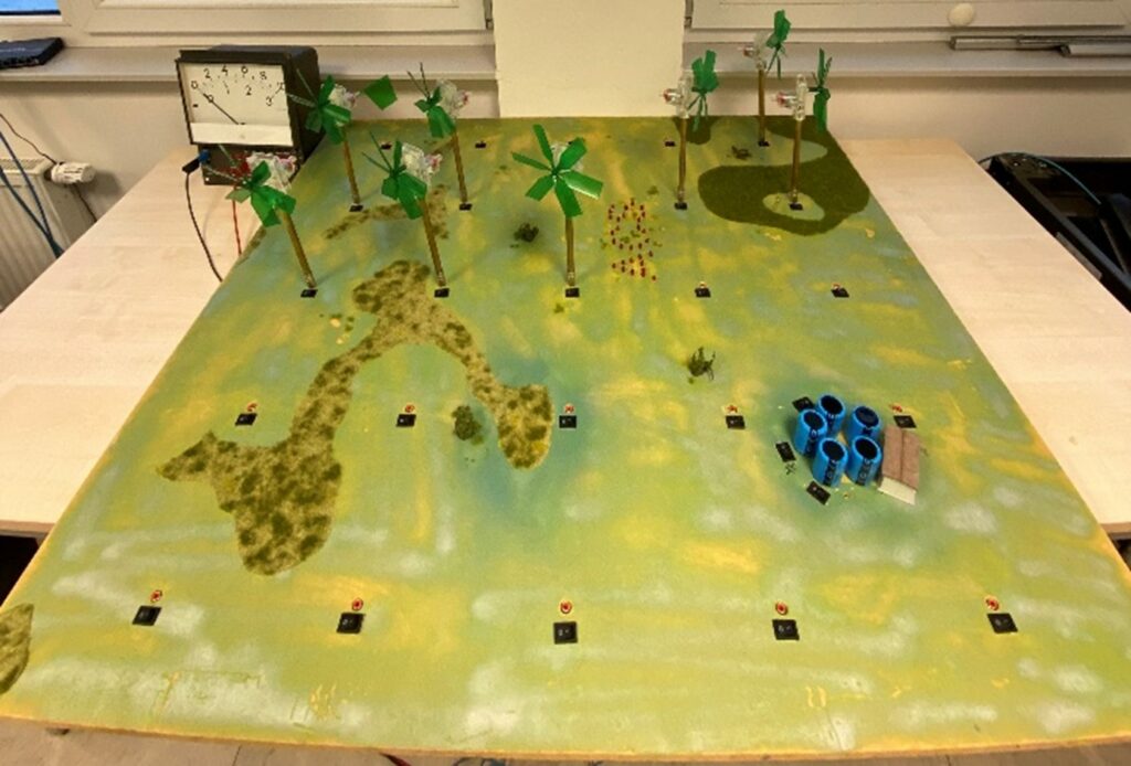 The “Archimedean Sandbox” event is a 3-week summer vacation program for school children from 10-16 years old organized by the city of Aachen and supervised by the local educational institution Bleiberger Fabrik in Aachen. Children can sign up for the program on individual days, weeks or the full period. The overall topic of the program is the energy generation through wind power. The Institute for Automation of Complex Power Systems (ACS) is one of the technical supporters of the program next to other institutes of the RWTH. As a Kick-Off event, the children will visit ACS and interact with a small wind park and energy grid demo. This is a starting point for children to design and build their own wind setup. ACS will give advice to the children in two follow up meetings on their own wind setup project in the city center of Aachen. Furthermore, another part of the program will be an open fair for the public. At this event, ACS presents the same wind park and energy grid demo to interested pedestrians. In the following, you can find two links disseminating the program (in German) and a picture of the model.