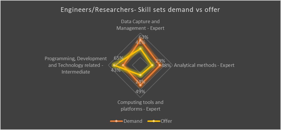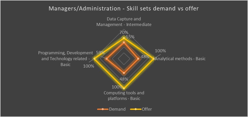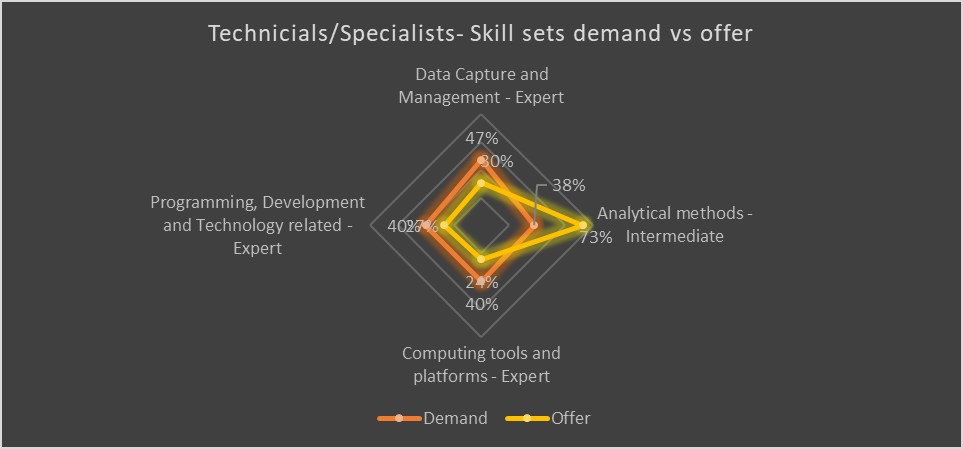 We compared the industry’s need in several digital skill sets and the provision of those skills from education and training providers for different categories of employees.