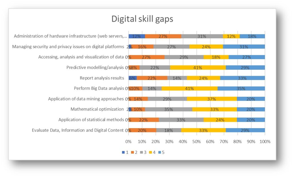 The participants were asked to rate the gaps of knowledge in a list of digital technologies, where each technology represents a set of skills and they easier for the respondents to assess.